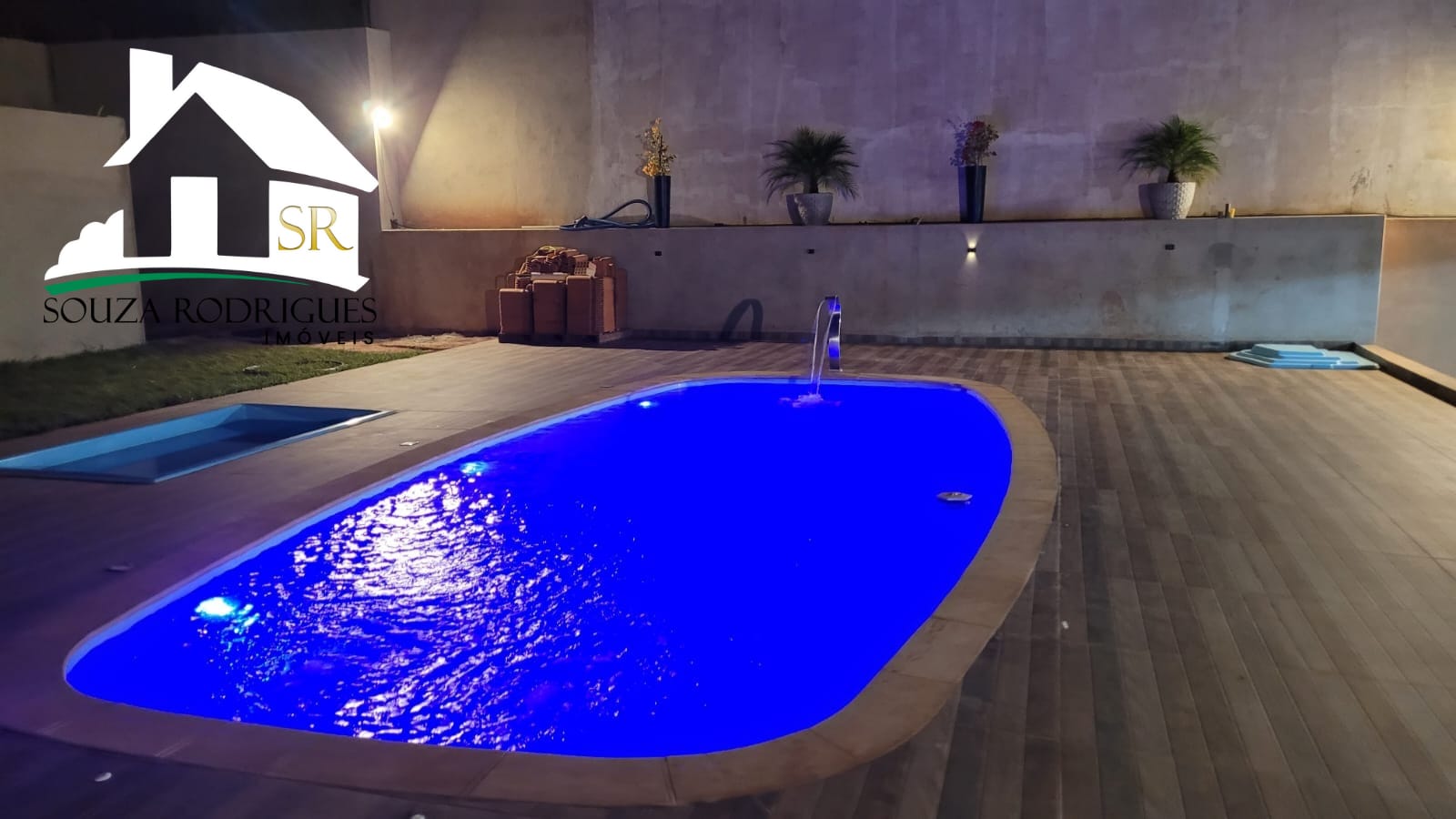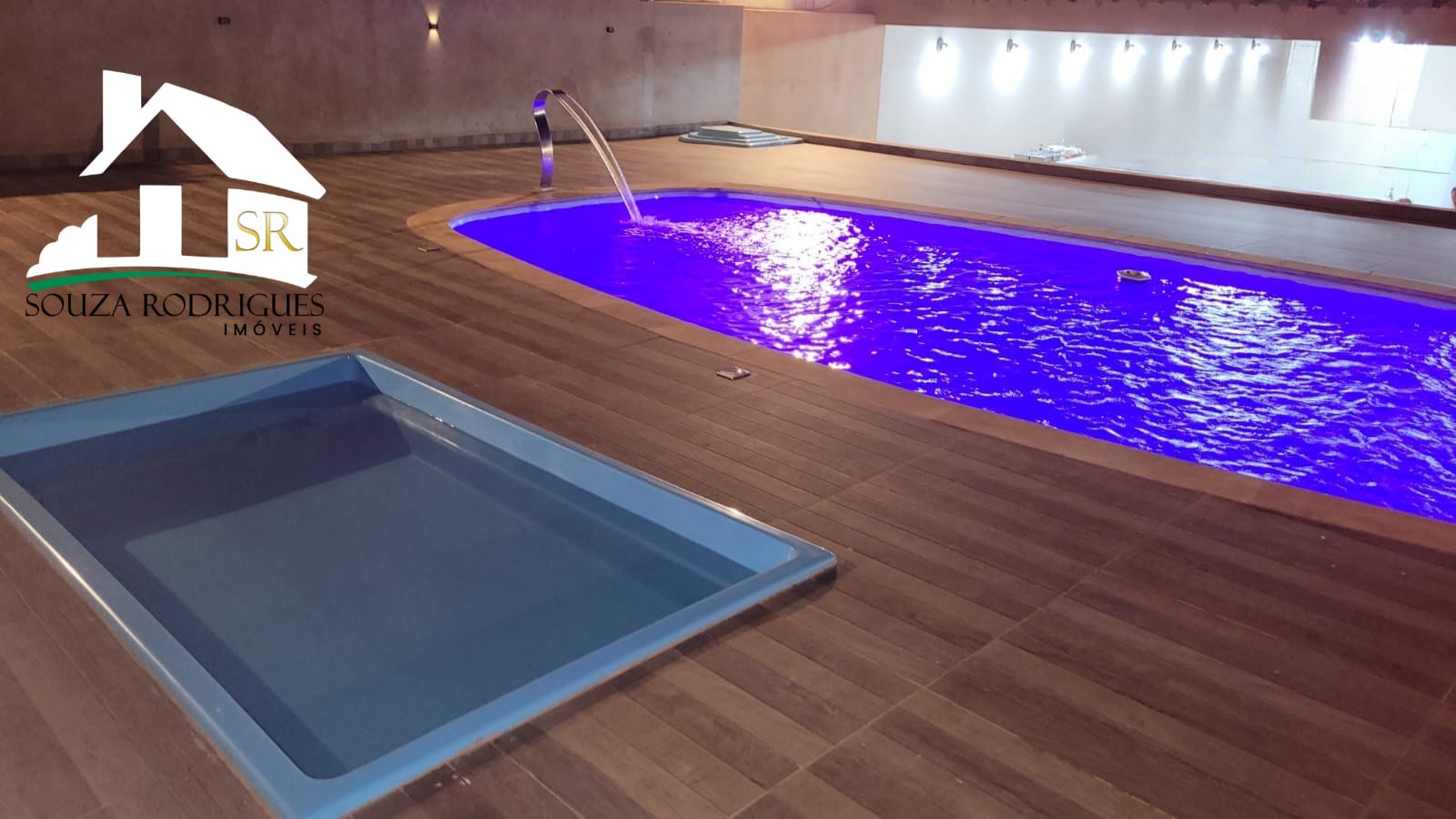 PISCINA DE FIBRA 8×4 COM CASCATA, LED E 2 PONTOS DE HIDRO